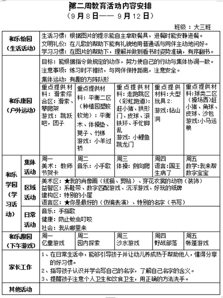 第二周教育活动内容安排
