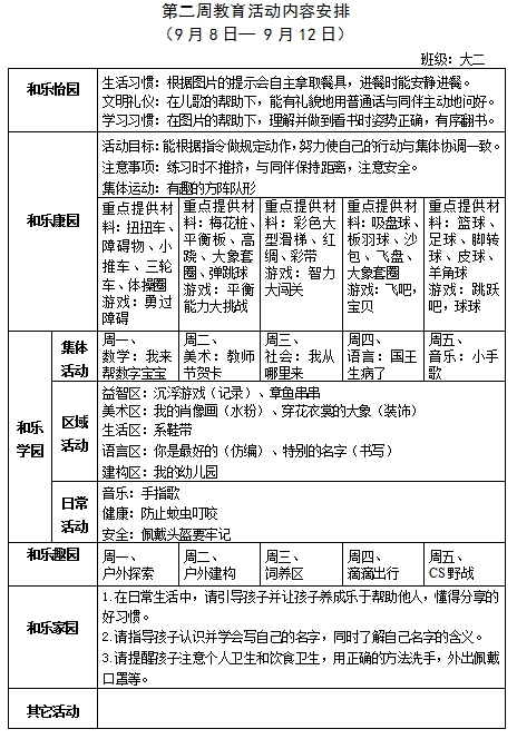 第二周教育活动计划