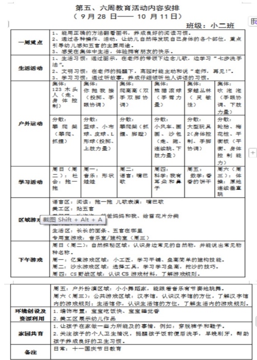 第五、六周教育活动计划