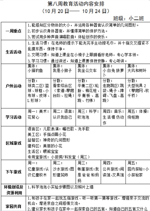 第八周教育活动计划