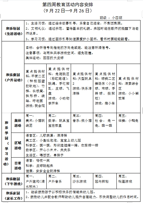 第四周教育活动内容安排