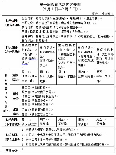 第一周教育活动计划